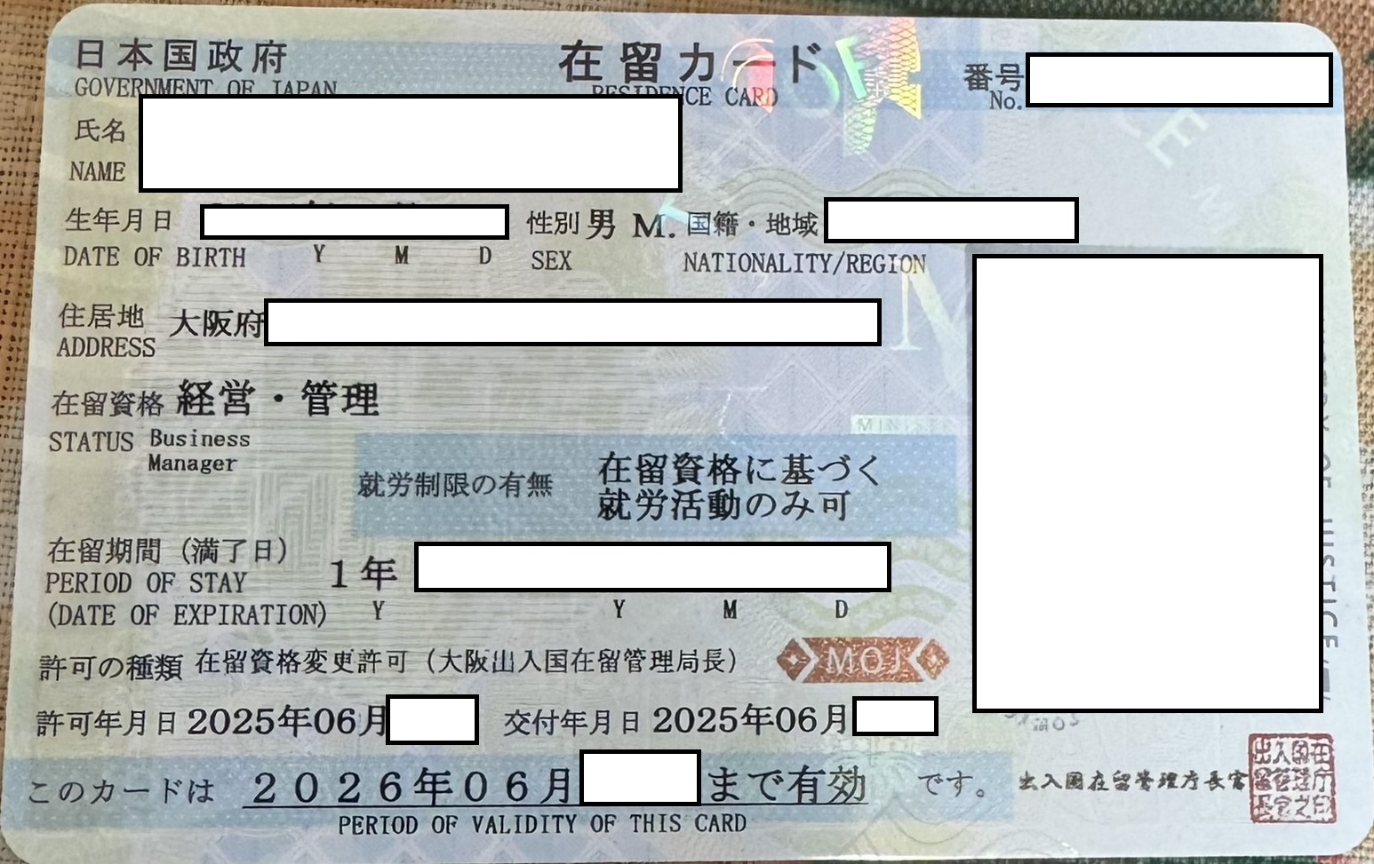 在留資格「留学」→「経営管理」への変更が許可されました。